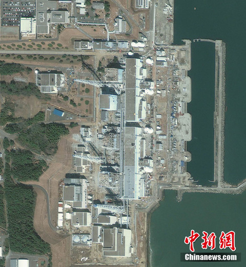 3月18日(当地时间上午10时03分)拍摄的卫星照片显示的是日本福岛第一核电站。