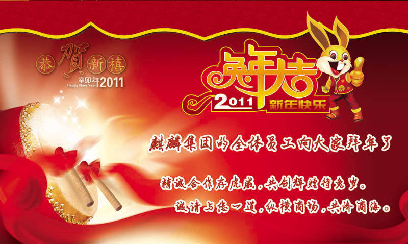 2011年的钟声即将敲响。虽有寒风刺骨,但户外的阳光依然明媚,寒冷的严冬中,春天的气息正在孕育。在这辞旧迎新的时刻,麒麟集团的全体员工向尊敬的各位用户、各位经销商、销售商致以崇高的问候和美好的祝愿!