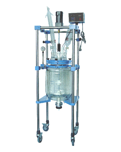 ·整体不锈钢立柱移动式框架结构,五口反应釜盖,具回流、加液、测温等全套玻璃。