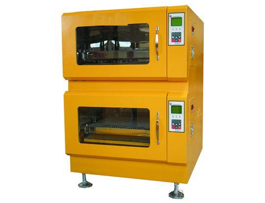 2、每层可独立控制,温度及转速单独设定,用户可根据需要任意运转一层或二层(上下两层可在不同温度、转速下同时运转)。