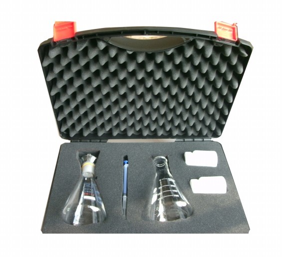 取被测水样于三角烧杯中,滴加氯化物试剂,1.摇匀,用针筒吸取氯化物试剂 2.向三角烧杯中缓慢滴加氯化物试剂2,摇下三角烧杯,直至被测水样的颜色变成浑浊的橘红色为止。