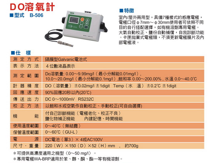 B-506日本饭岛DO溶氧计的详细介绍