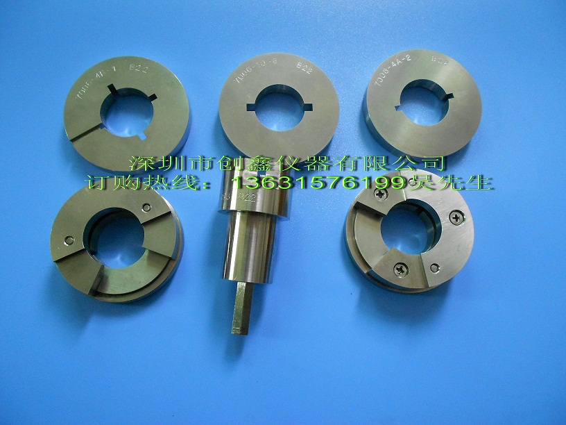 本公司设计制造的“B22d”系列卡口式灯头量规,适用于各种口径为22的卡口结构灯头电光源灯泡的质量检测.其结构通过电脑的计算及优化,再通过电脑机床的加工,达到了高度的精密和美观.其材料采用防锈能力强的高硬质合金制造.最近,经技术攻关,量规的硬度提高到 HRC=70~75 (GB及IEC要求: HRC=58~65),寿命提高3~4倍.由于型号繁多,具体根据用户订货制造。