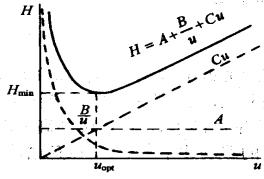 2. 流速(u)对柱效的影响:从速率方程可知,分子扩散项与流速成反比,传质阻力项与流速成正比,所以要使理论塔板高度H最小,柱效最高,必有一最佳流速。对于选定的色谱柱,在不同载气流速下测定塔板高度,作 H-u 图。
