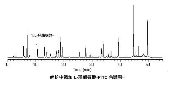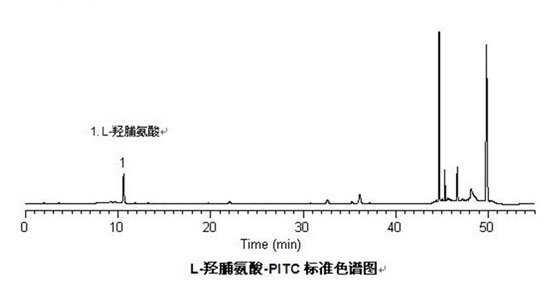 赛智科技应用质检部采用L-羟脯氨酸衍生方法,利用公司自己的LC-10Tvp高效液相色谱仪,对L-羟脯氨酸进行了分析检测试验,并通过公司的VI2010色谱工作站进行了详细分析,得出的检测结果准确,可靠,供广大客户参考使用。