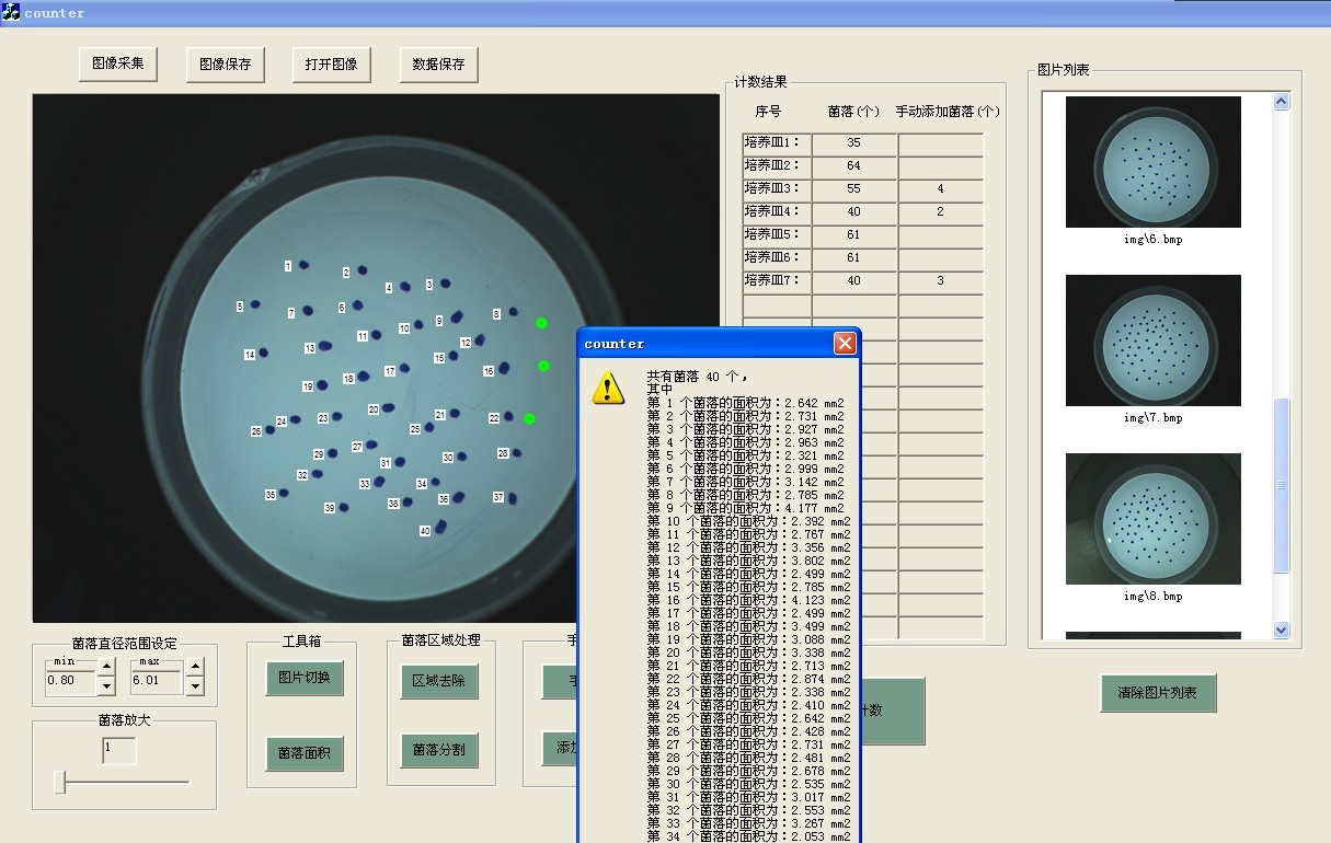 可对菌落进行局部放大 自动计数菌落面积,并可以txt格式导出