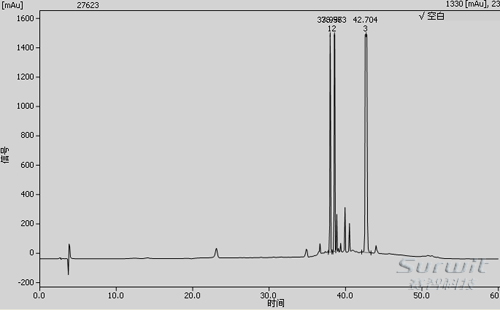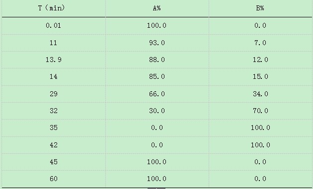 配置方法:准确称取三水合醋酸钠13.6g于1000ml水中,搅拌均匀,溶解,用冰醋酸或氢氧化钠溶液调节pH值至6.5; 准确量取配制好的三水合醋酸钠溶液465ml和乙腈35ml,混合均与,抽滤,过0.45μm滤膜。