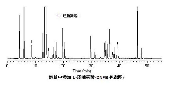 赛智科技应用质检部采用L-羟脯氨酸衍生方法,利用公司自己的LC-10Tvp高效液相色谱仪,对L-羟脯氨酸进行了分析检测试验,并通过公司的VI2010色谱工作站进行了详细分析,得出的检测结果准确,可靠,供广大客户参考使用。