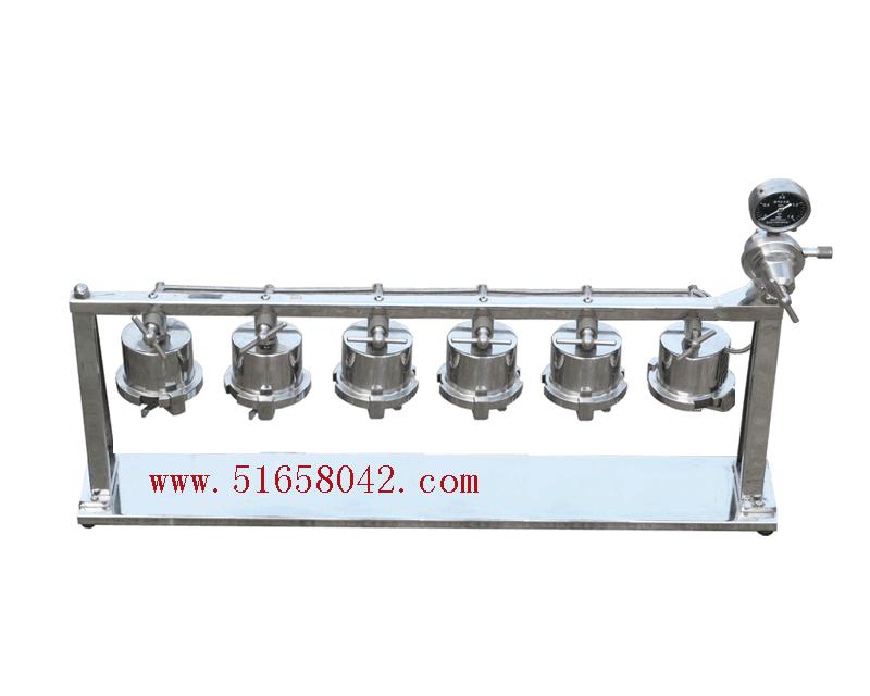 六杯泥浆滤失量测定仪仪,是指压差为0.69Mpa,的滤失量测定仪。主要用于测定钻井液的滤失量和制取滤失后形成的泥饼。使用时,选用多联钻井液杯,可同时进行多个试样的测定。测试效率高、测量准确。 六杯泥浆滤失量测定仪仪 主要技术参数 1 配置 铝杯/不锈钢杯; 六联 2 最大钻井液注入量 240ml×6 3 有效滤失面积 45.6cm2 4 工作压力 0.69MPa 5 泥浆杯最大压力 1MPa