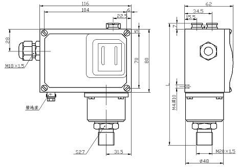 压力接口垂直向下(允许倾斜15°)