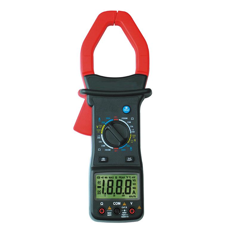 特点和参数:· 显 示:1999计数· 直流电压:1000V±1.0%· 交流电压:750V±2.0%· 交流电流:200/2000A · 电 阻:200Ω±1.0%,20K/20MΩ±1.5%,2000MΩ±5.0%· 电 源:6F22(9V)×1· 外形尺寸:282×104×47mm· 重 量:约570g