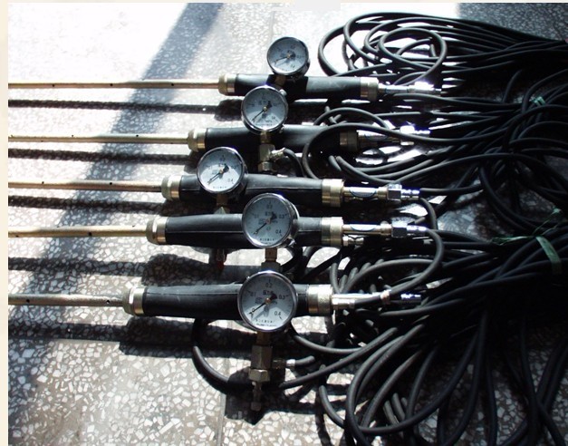 主要用于对采掘工作面进行煤与瓦斯突出危险性预测或防突措施效果检验时测定钻孔瓦斯涌出初速度指标,也可用于测定钻孔自然瓦斯涌出量。全套装置由封孔器、测量管、测量室管、充气胶管、打气筒、低压三通、流量计等组成。基本操作过程为:在钻孔打到预定深度后,将测定装置送入孔内,然后用打气筒向封孔器的胶囊充气,胶囊膨胀后贴紧孔壁,使封闭在测量室的瓦斯通过测量管流到流量计。结构严谨,能最大限度地确保测定数据的可靠性。胶囊的材料为高强度强弹性橡胶,能够对更大直径的钻孔进行封孔测定。胶囊采用卡箍进行安装固定,更换更为方便。