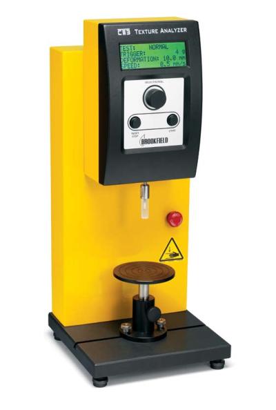 CT3质构仪可对样品的质构特性做出准确的定量表述。它使用统一的测试方法,是精确的量化测量仪器,消除人为的和个人感官的主观性影响。其测量方法符合诸多国际和国家标准的要求,如:AACC(美国谷物化学家协会),AOAC(国际凝胶测试协会),ISO,BS757:1975,GB6783-94等。