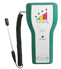- 测量时,将探测头完全插入待测量的刹车油中,一直按下红色按钮开关数秒后,根据工作指示灯判断刹车油液体的状态。