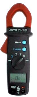 * 3 3/4位数字显示 * 高速类比条码(41段) * 取样率:2次/秒 * 资料锁住功能 * 自动换档 * 自动关机 * 可测量电压和电流频率 * 触摸或归零按钮 * 钳部开口:30mm * 外部尺寸:193(L)X50(W)X28(H)mm * 全功能600V误用保护 迷你数位式钳表CENTER 201的参数: 交直流电流档:40A/400A 交直流电压档:400V/600V 电阻测量功能 导通测量功能 DCV