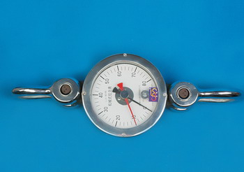 测力范围:0—80千牛顿。可供石油钻井、修井、矿业勘探指示钻杆悬重;可供江河运输、海洋捕捞和各种锚链的拉力测量;可供海军部队用于水雷的布放及排除作业;可供电力行业高压线布线时拉力测量;可供工程建筑、皮带运输机的引力测量;可供各种安全装备的抗拉力实验。可以测量在静力载荷和动力载荷下牵引阻力的瞬时值,表盘上红针指示测量过程中的最大拉力值。