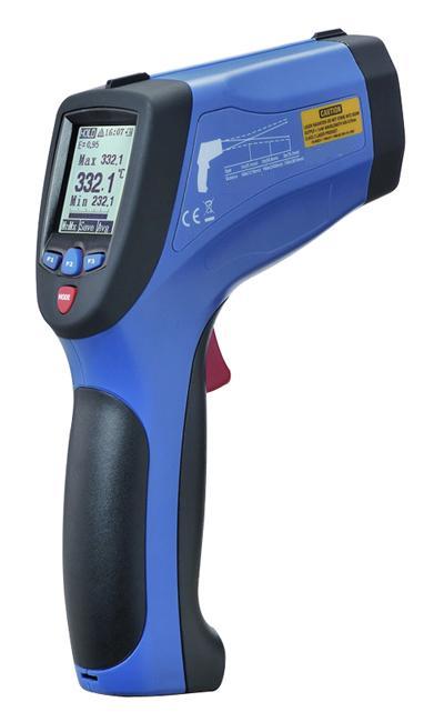 高的光学测量距离与物体目标比(D:S),便于测量不易靠近的目标。 测温量程范围宽-50.0ºC~1200ºC(-58.0~2192ºF) 独特新式的机壳设计 内置4个激光瞄准点,可以快速,准确的瞄准目标 数据保持功能可保存数值,便于操作者准确读取测量数值。 MAX,MIN,DIF, AVG 温度显示 自动关机和高低温报警装置 发射率调整设置(0.1~1.0),可以根据需要调整发射率 ºC/ºF可转换和超量程提示 USB接口和扳机锁定 带有白色背光的液晶显示屏 K型输入和数据存储 技术指标