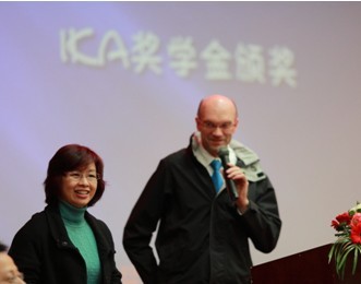 图为IKA中国公司总经理KLAUS JACUK先生于2010年底在奖学金颁奖典礼上致辞