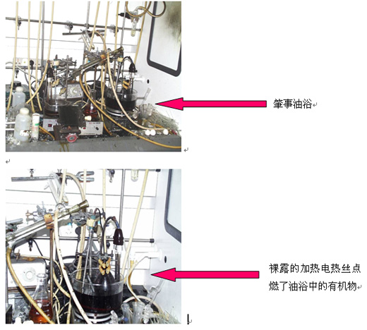 实验时,试剂滴落到油浴中,因油浴未及时更换,导致事故的发生。