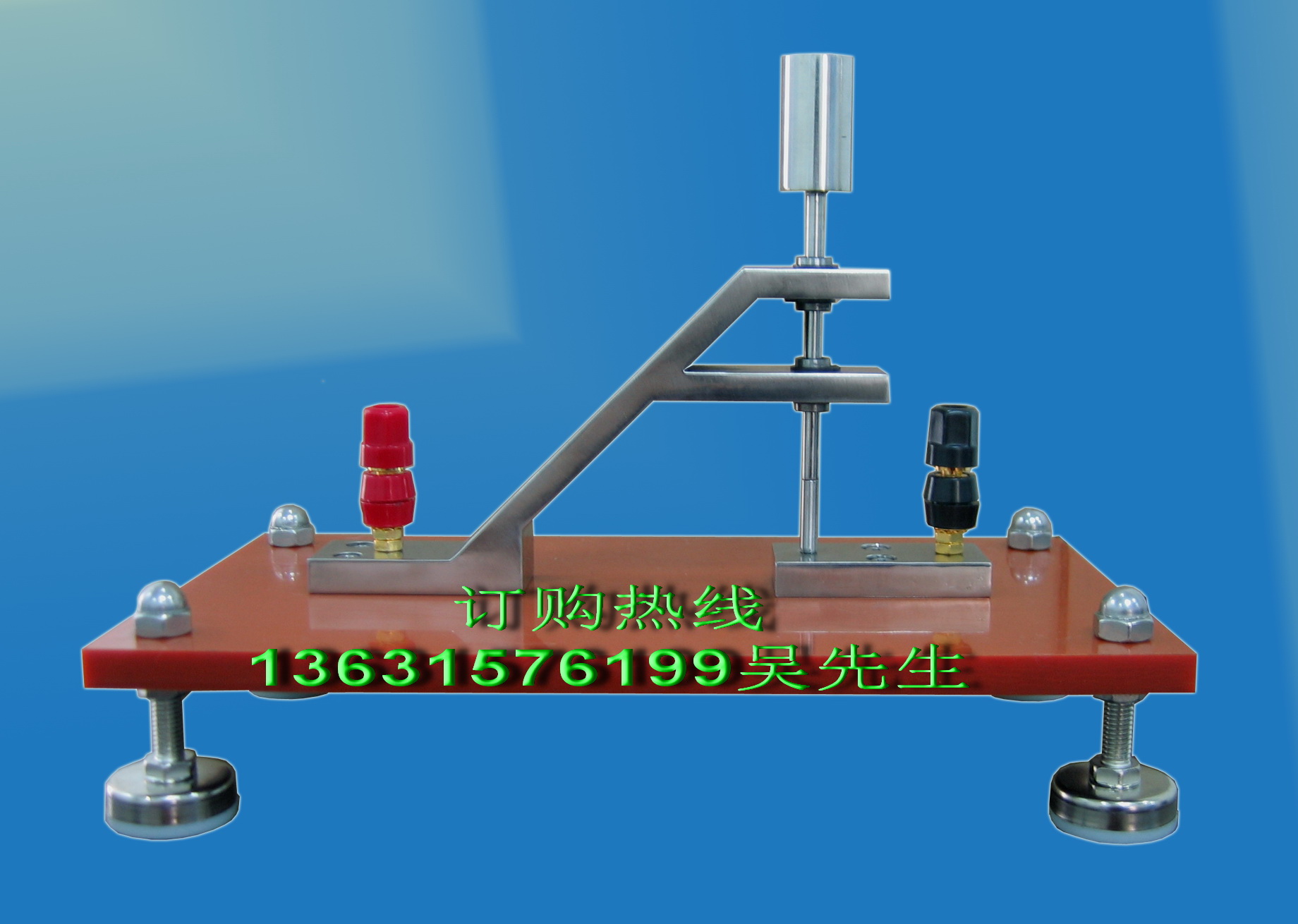 本抗电强度试验台是按 GB8898-2001 第 10.3.2 条款要求,外形按照图 6 要求而设计制作。用于音频、视频及类似电子设备在进行绝缘电阻和抗电强度试验时,如对薄层绝缘材料进行抗电强度试验时,须采用本抗电强度试验台