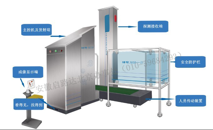 人体穿透分辨力:设备能分辨出置于300mm厚人体后的标称直径为3mm的铁丝及5mm厚的有机物。